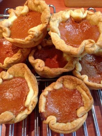 De lo más típico en Halloween en los Estados Unidos. Como en la foto se pueden hacer tartaletas individuales con masa quebrada comprada, utilizando un molde para magdalenas y reduciendo la cocción.