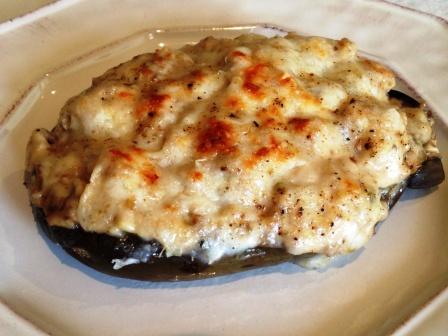 Rellenamos las berenjenas con la farsa y espolvoreamos con abundante queso rallado. Por último se gratinan en el horno. Se pueden hacer por adelantado calentándolas y gratinándolas en el horno en el último momento.