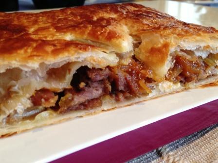Que elegante y tramposo es este hojaldre. Si no te ve nadie puedes decir que llevas todo el día en la cocina. Para una cena de lujo francés será todo un éxito.