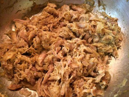 En una olla rápida pochamos en un poco de aceite el ajo y el jengibre. Añadimos el puerro en juliana y la cebolleta y salpimentamos. Majamos las semillas con un poco de sal y pimienta y reservamos. Cuando empiece a dorar añadimos los cuartos de pollo sin piel y por encima las especias y el medio limón rallado. A continuación regamos con el vino y cuando evapore el alcohol con el caldo hasta casi cubrir. Tapamos y cocemos al máximo hasta que pite la olla. Bajamos el fuego al mínimo y dejamos cocer 15 minutos. Apagamos y esperamos a que baje la presión. Yo lo hago en vitroceramica, por lo que el fuego aguanta un rato caliente. Si tu cocina es distinta cuece un poco más. Cuando puedas abrir la olla saca el pollo y quítale los huesos haciendo hebras con la carne. Vuelve a incorporarla y cuece a fuego fuerte hasta que se evapore la mayoría del caldo.