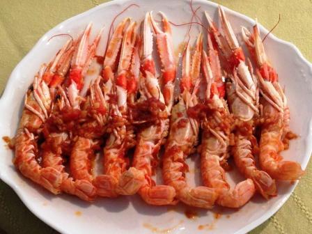 En una sartén con bien de aceite ponemos a dorar los ajos picados a fuego medio fuerte. Les damos unas vueltas y ponemos las cigalas boca abajo. Las dejamos un par de minutos hasta que se empiecen a poner blancas por abajo. Subimos el fuego y les damos la vuelta. Al poco incorporamos brandy y dejamos que se evapore el alcohol y por último el tomate rallado. Dejamos que reduzca un poco y servimos calientes.