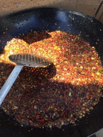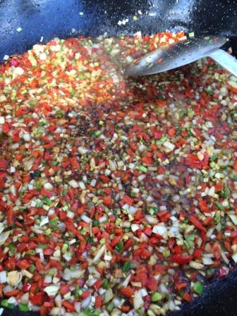 Que tiempo mas raro está haciendo. Parece que llega el calor de golpe y luego refresca. ¿Será porque es primavera? Últimamente nos resistimos y decimos que pasamos del calor al frío y viceversa, pero yo pienso que seguimos teniendo las cuatro estaciones. Hoy receta de campo y calorcito. Las fotos son de un arroz que hemos hecho para 20 personas con 3 kilos de arroz, pero la receta la pongo a tamaño casa. Por supuesto si el conejo es de monte mejor, aunque ojo porque sale más fuerte. Los puristas dirán que la cebolla y la zanahoria no se le echan al arroz, pero resulta. A disfrutar.