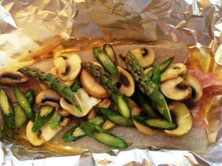 Esta es una forma muy sana de preparar alimentos ya que no requiere casi grasa y se cocina al vapor. Originalmente se hacia con papel sulfurizado, pero es más comodo con papel de aluminio ya que se cierra mejor. Se puede hacer en el horno o en una plancha. Utiliza cualquier otro pescado como gallo o salmón (que no sea muy grueso para que se haga bien), incluso carne como un par de filetillos finos por persona de una carne jugosa. A disfrutar.