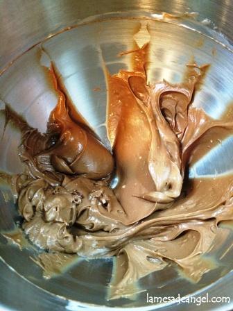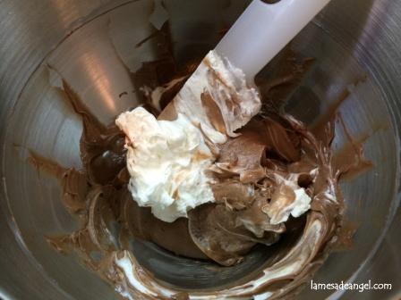 Montamos la nata bien fría en un recipiente también frío para que monte mejor. Reservar en la nevera. Batimos el queso a temperatura ambiente con el azúcar y la vainilla hasta que se disuelva y suba un poco. Incorporamos la nocilla también a temperatura ambiente y seguimos mezclando hasta que esté uniforme. Añadimos la nata con una espátula o lengua con movimientos envolventes.