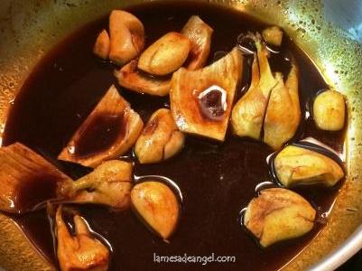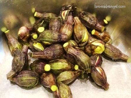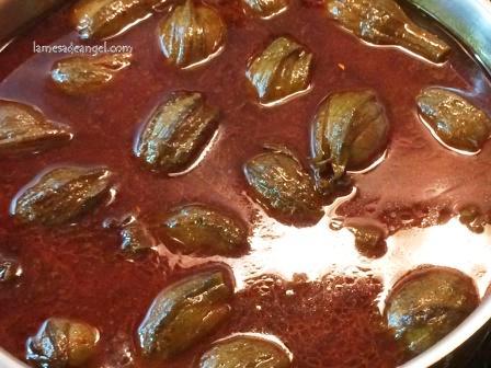 El otro día encontré berenjenas pequeñitas para aliñar y me puse manos a la obra a buscar una receta de aliño para berenjenas de Almagro. La verdad es que había varias y nadie se ponía de acuerdo. De una mezcla de todas ellas ha salido esta que no está nada mal. Un poco hay que jugar con la cantidad de especias y el vinagre al gusto. Si son un poco más grandes, y ya que se cortan por la mitad, se pueden rellenar con un trozo de pimiento rojo asado. Se sujeta pinchándola con un palo de hinojo, pero si no tienes pues un palillo hace el efecto. Lo bueno es que el vinagre y la sal hacen de conservante y duran bastante. A disfrutar.