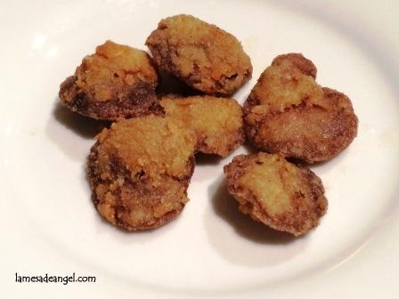 Limpiamos bien las setas con un cepillo o paño húmedo. Elegimos las más pequeñas para esta preparación. Batimos bien el huevo y lo salpimentamos. Pasamos las setas bien por el huevo y a continuación por el pan rallado. Las freímos a fuego medio hasta que empiecen a dorar y subimos el fuego al máximo para que pierdan el aceite. Escurrimos sobre un papel de cocina y servimos calientes.