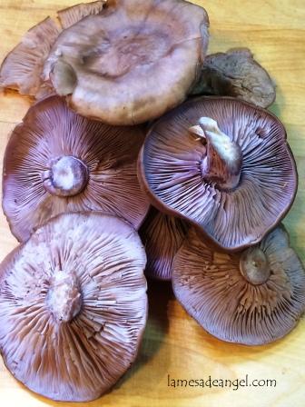 Aparte de los parasoles de la semana pasada también cogimos algún pie azul. Esta seta es tardía y fácil de reconocer ya que la parte de abajo es enteramente azul. De todas formas si no la conoces mejor ir con alguien que lo haga. Es una seta muy perfumada por lo que solas con un poco de ajo son un poco fuertes para mi. Simplemente empanadas están mucho más buenas porque pierden un poco la fuerza. A disfrutar.