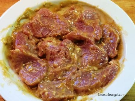Preparamos la marinada mezclando los ingredientes con una varilla. Incorporamos el solomillo cortado en medallones y reservamos en la nevera tapado el tiempo que queramos, si es un par de horas o de un día para otro mejor.