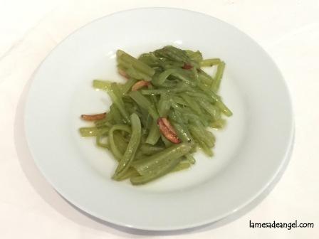 En una sartén con un poco de aceite doramos los ajos picados y añadimos las verduras escurridas. Si es necesario incorporamos un poco más de aceite y rectificamos de sal y pimienta.